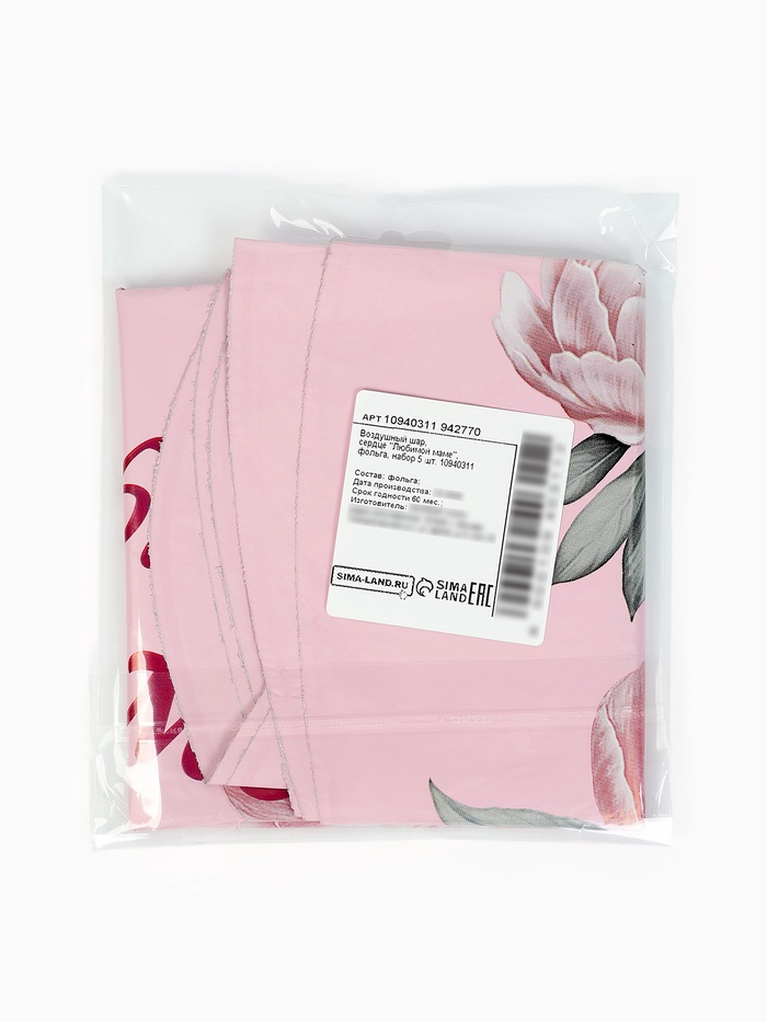 Воздушные шары фольгированные «Любимой маме», 5 шт.