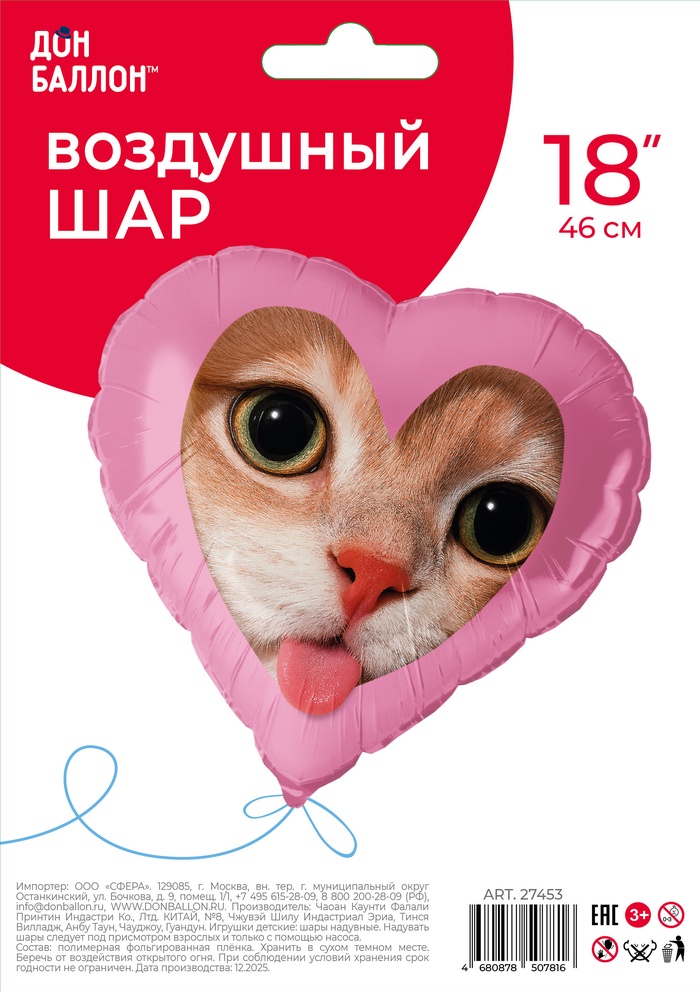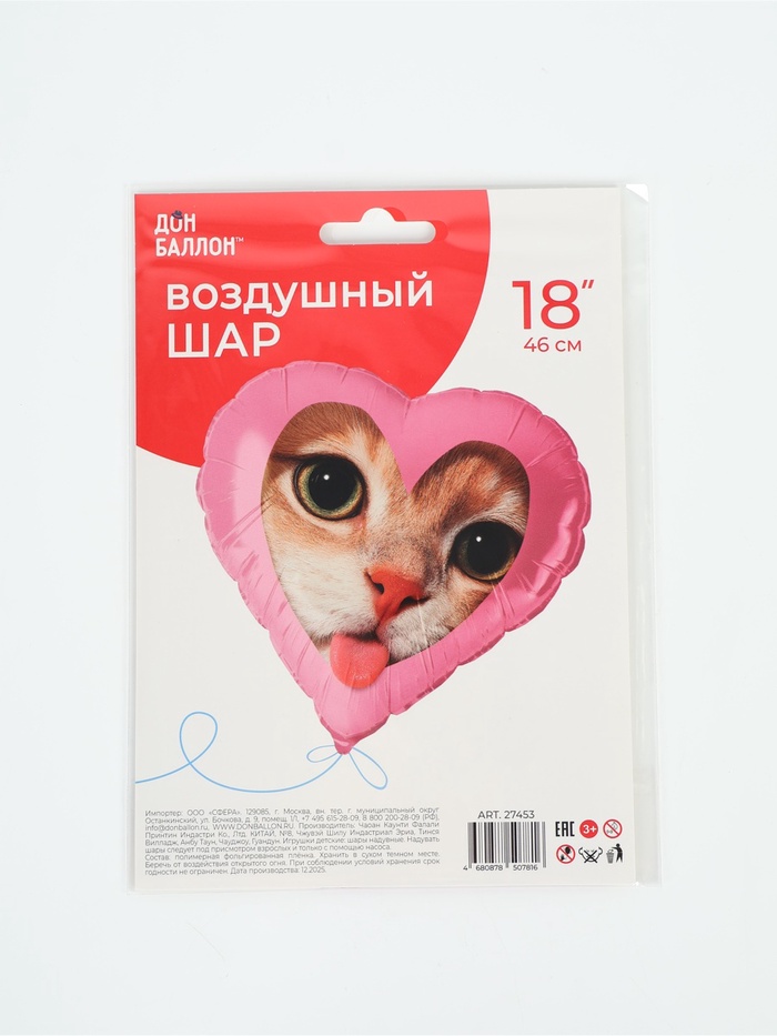 Воздушный шар фольгированный 18" «Котик»