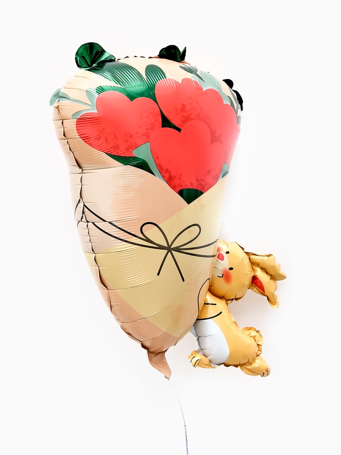 Фольгированный шар «Зайчик с букетом» — это отличный выбор для украшения дома, ресторана на торжество. Благодаря своему дизайну шар будет привлекать внимание и создавать нужное настроение на празднике. Шар можно надувать только воздухом, благодаря этому шар можно поставить на пол или стол и эта фигура будет радовать вас на протяжении всего вечера.