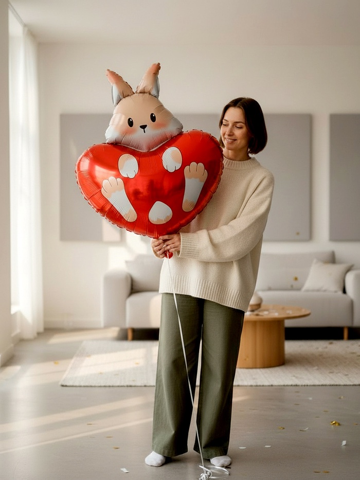 Фольгированный шар «Зайка с сердцем» — это отличный выбор для украшения дома, ресторана на торжество. Благодаря своему дизайну шар будет привлекать внимание и создавать нужное настроение на празднике. Шар можно надувать только воздухом, благодаря этому шар можно поставить на пол или стол и эта фигура будет радовать вас на протяжении всего вечера.