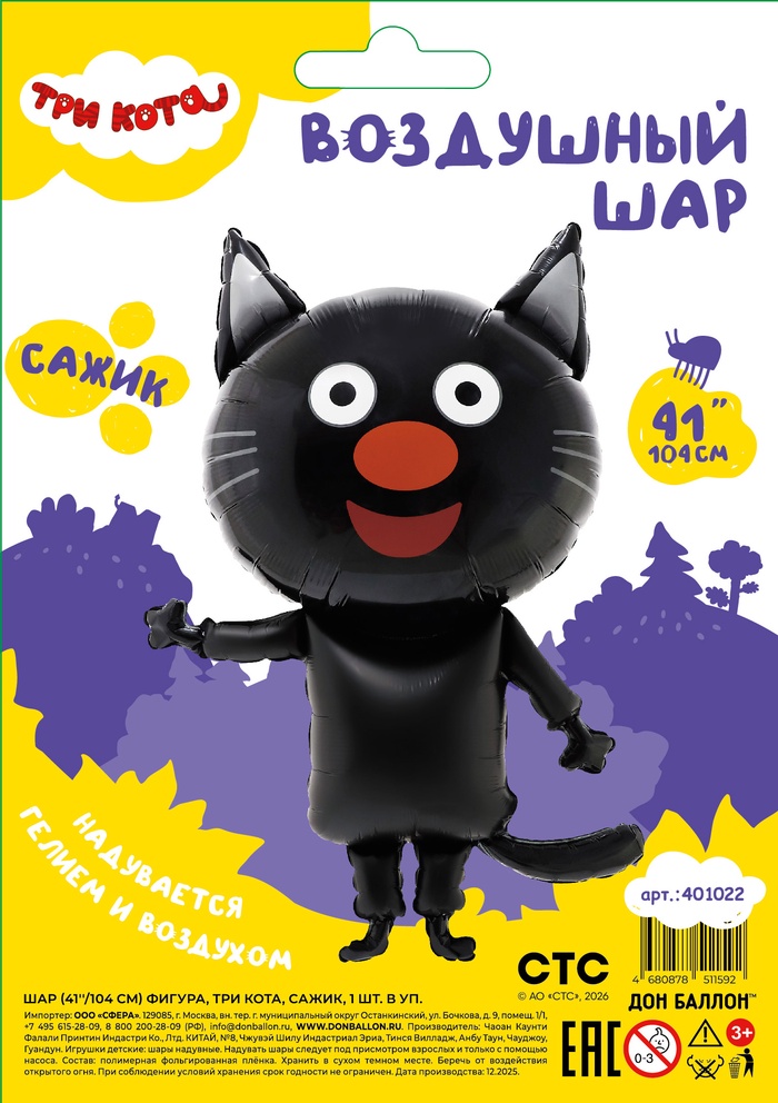 Воздушный шар фольгированный 41" «Три Кота, Сажик»