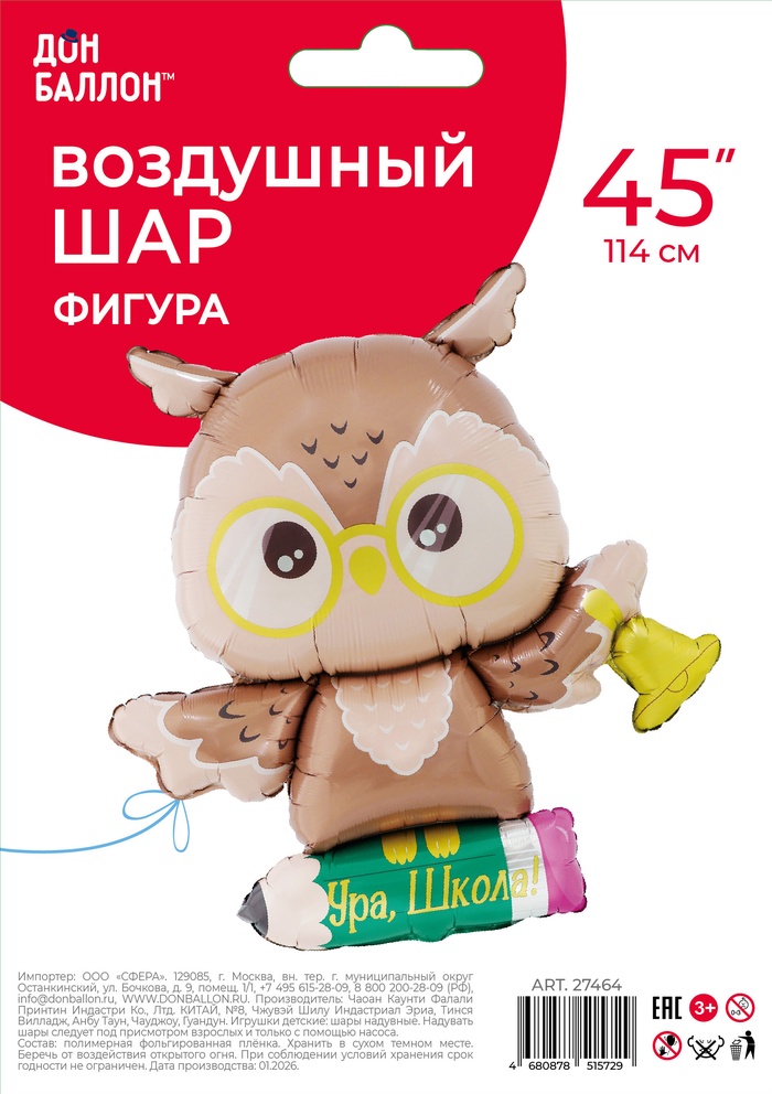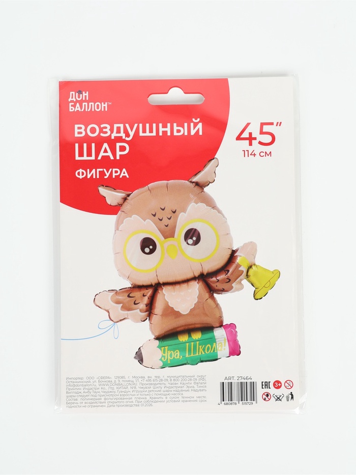 Воздушный шар фольгированный 45" «Мудрая сова», 114 см
