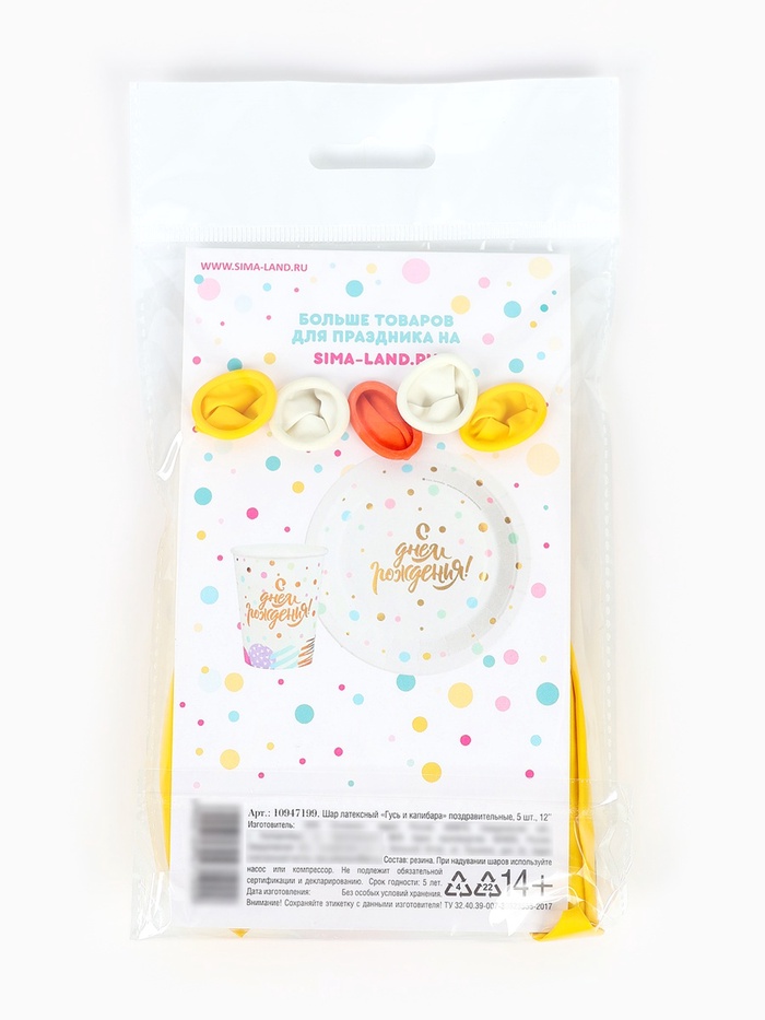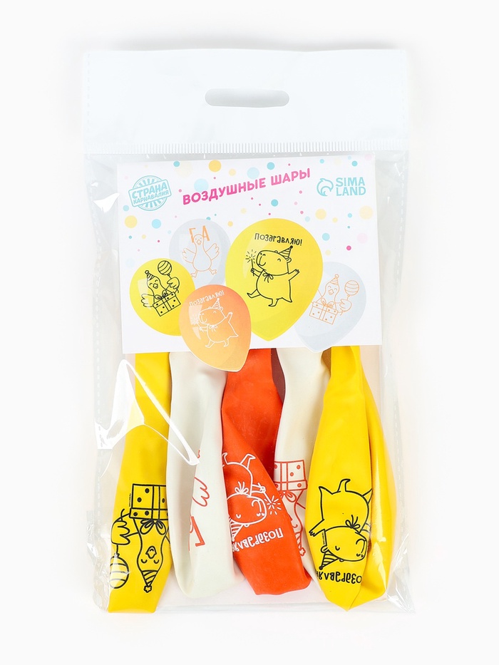 Воздушный шар латексный 12" «Гусь и капибара», набор 5 шт.