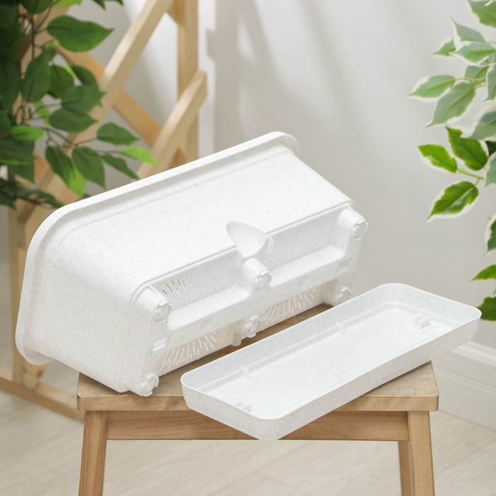 - Надёжная дренажная система: благодаря дренажным отверстиям и съёмному поддону, ящик эффективно защищает корни растений от избыточной влаги. Вода аккуратно собирается в поддон, что помогает поддерживать растения в здоровом состоянии и сохраняет балкон чистым.