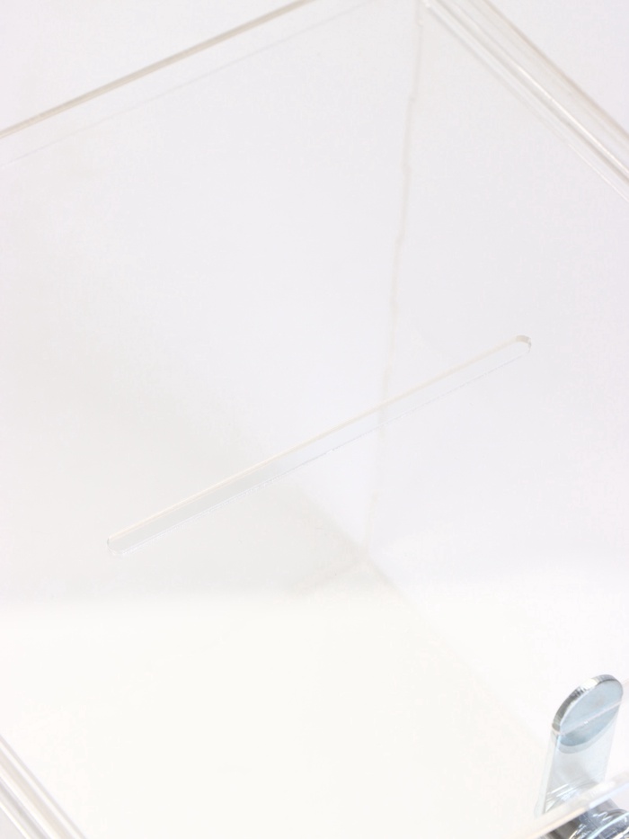 Ящик для сбора денег с врезным замком обеспечивает безопасность и стильный внешний вид. Размеры 20×20×20 см делают его компактным и удобным для использования. Прозрачное оргстекло позволяет видеть содержимое. Подставки из оргстекла (листовой акрил). Благодаря использованию 100% акрила, подставки имеют идеальную прозрачность, высочайший блеск и шикарный внешний вид. ВНИМАНИЕ: Изделия поставляются в матовой защитной плёнке, белого, синего, зелёного или прозрачного цвета, которую необходимо удалить перед оценкой качества или перед использованием.