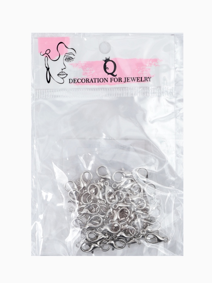 Замок-карабин, 12*7мм, набор 55 шт, цвет серебро