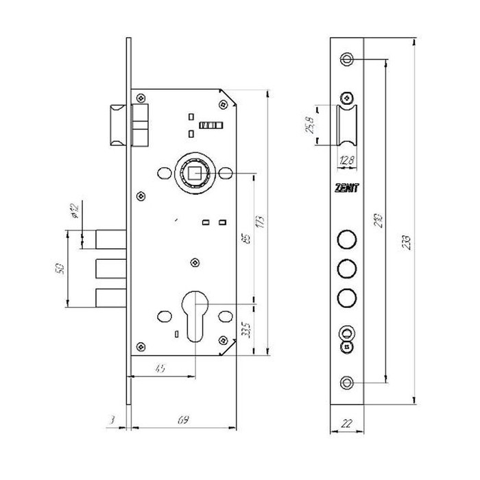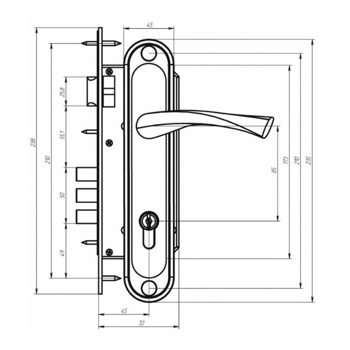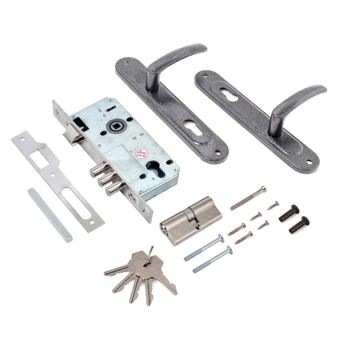 Замок врезной Д-град Зенит ЗВ4-85.3-02, с ручками, цвет серебро