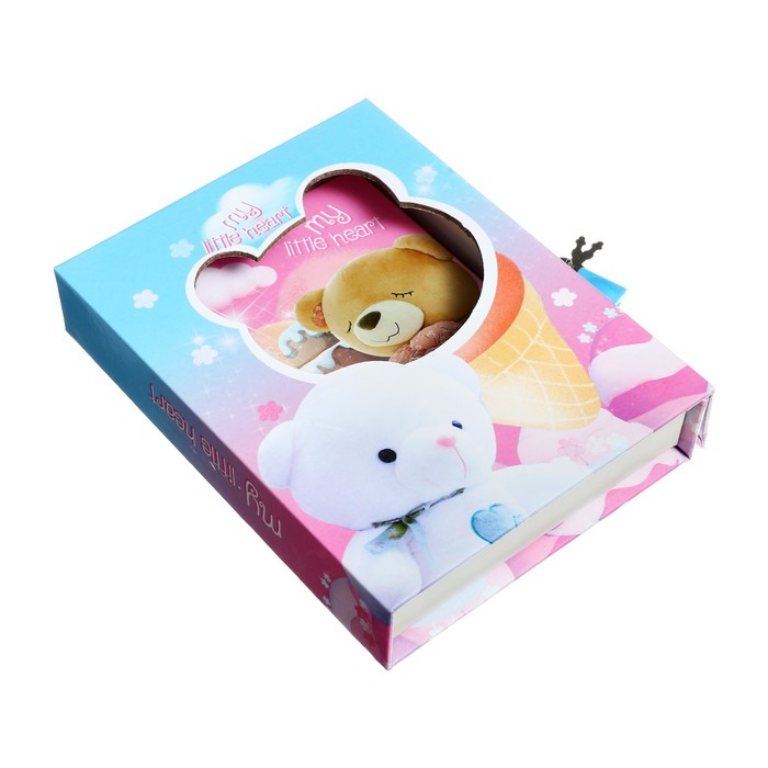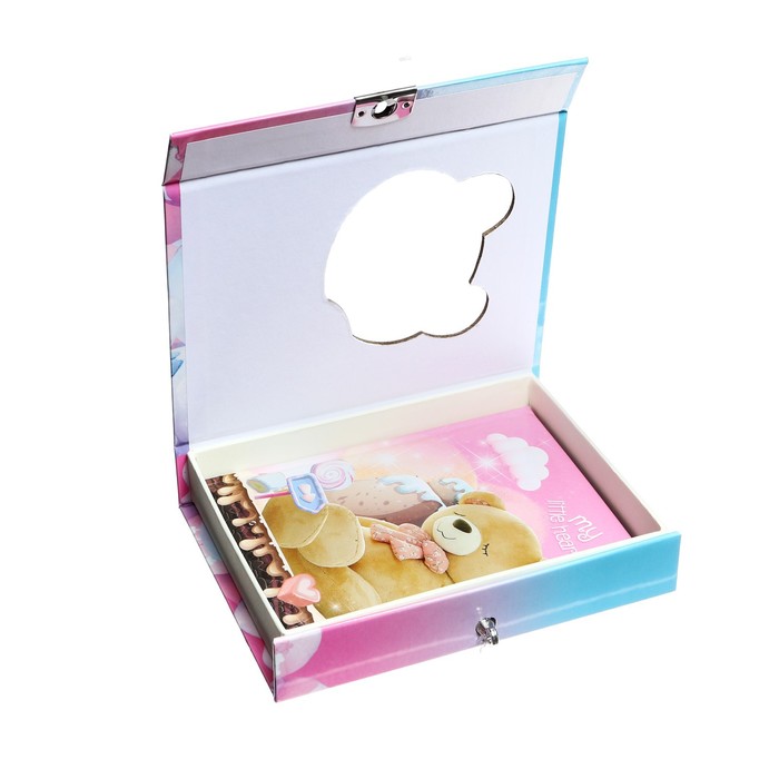Записная книжка в подарочной коробке, на замочке, А6, 50 листов, линия «Мишка», МИКС