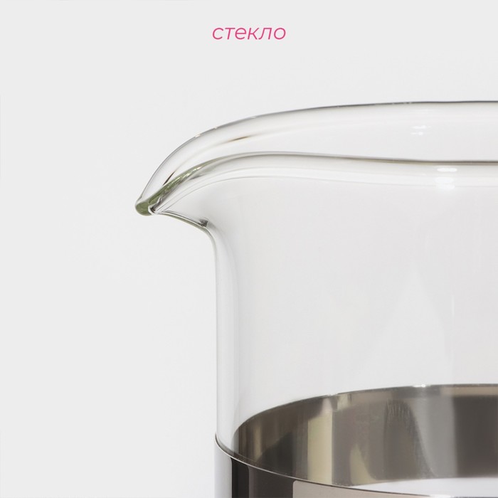 Стеклянный френч-пресс хорошо держит тепло, раскрывает вкус любимых напитков. Стальной поршень не вступает в реакцию с жидкостью, не наделяет ее металлическим привкусом.Принцип работы френч-пресса прост:
