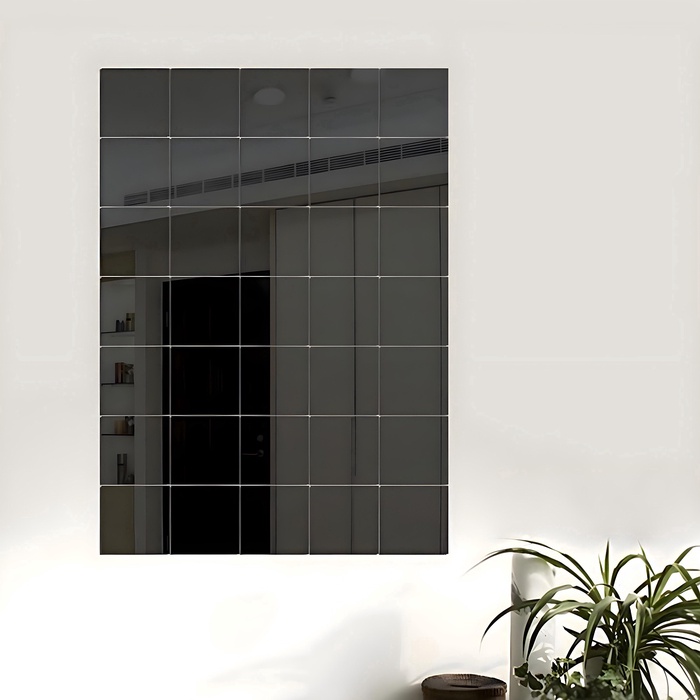 - Универсальный дизайн — чёрные зеркальные квадраты органично дополнят интерьер любого стиля.