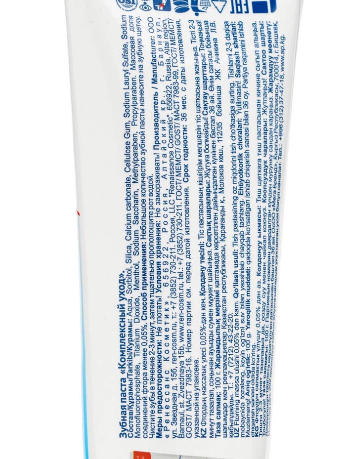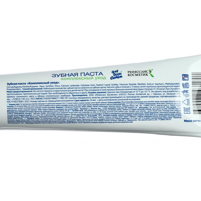 Основные характеристики зубной пасты "Для всей семьи комплексный уход":