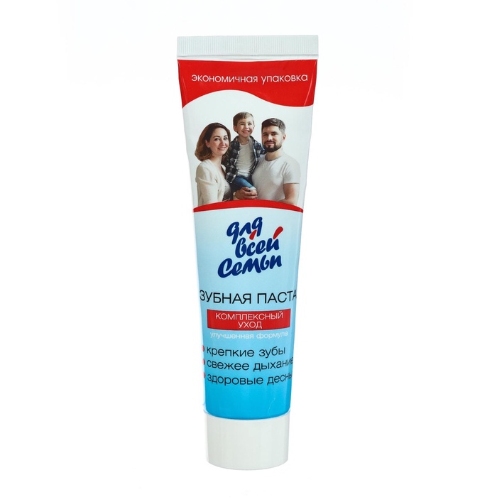 Зубная паста "Для всей семьи комплексный уход" - это продукт, специально разработанный для обеспечения комплексного ухода за полостью рта всей семьи. Ее формула сочетает различные активные ингредиенты, которые помогают бороться с различными проблемами полости рта и обеспечивают полноценный уход за зубами и деснами.