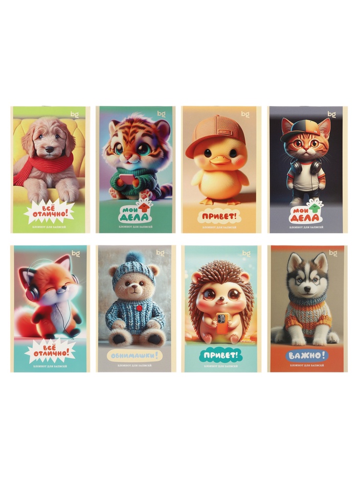 Блокнот А6 32л кл на скрепке BG "Милые пушистики", мел карт, офсет МИКС