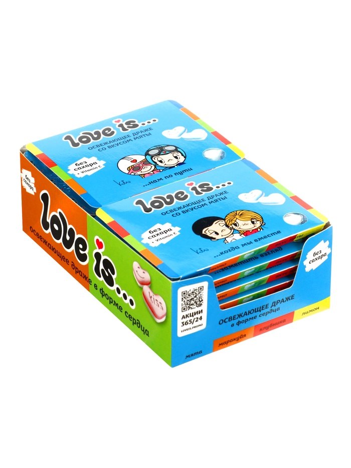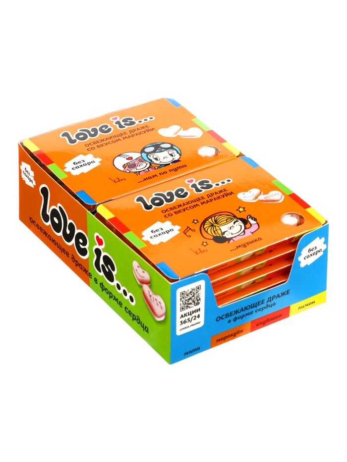 Освежающие конфеты LOVE IS… в форме сердца со вкусом МАРАКУЙЯ в БЛИСТЕРЕ и ОБЕЧАЙКЕ 10,8 г