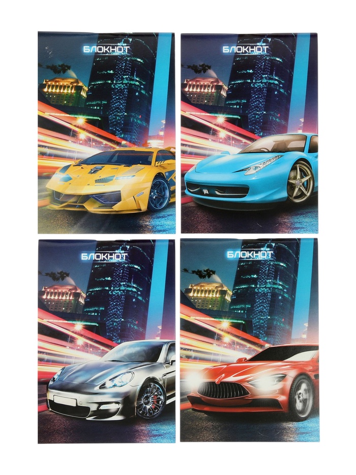 Набор блокнотов 4 шт А6 24л кл на скобе Авто, мел карт, бл офс, 4В