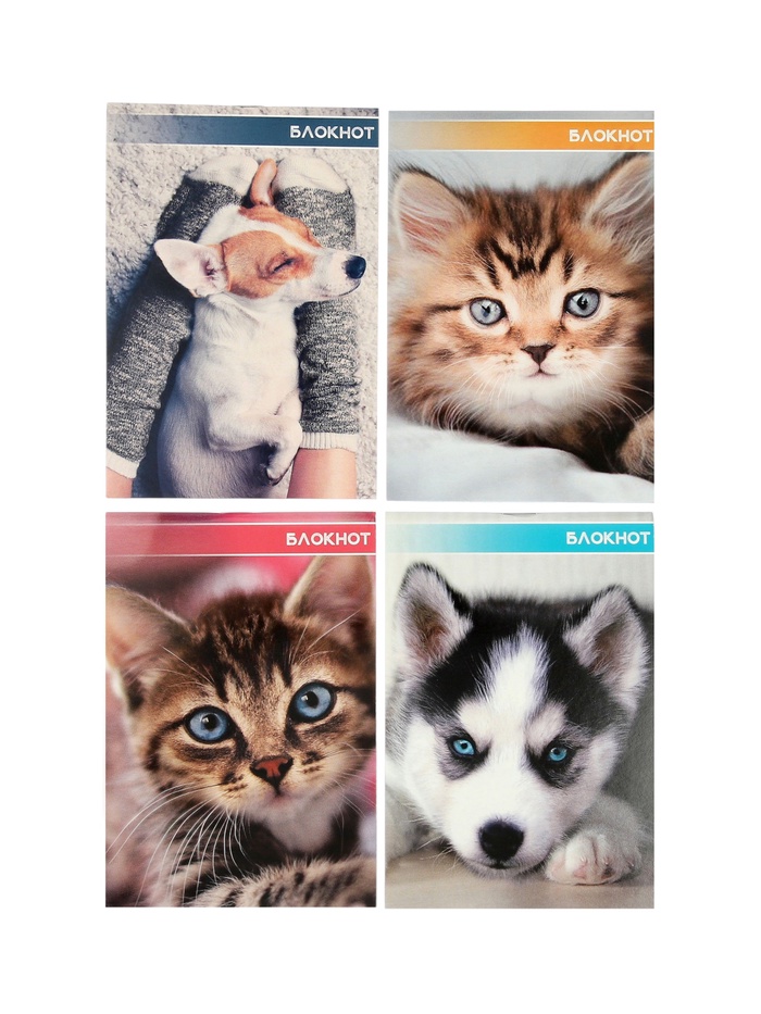 Набор блокнотов 4 шт А6 24л кл на скобе Котята и щенята, мел карт, бл офс, 4В