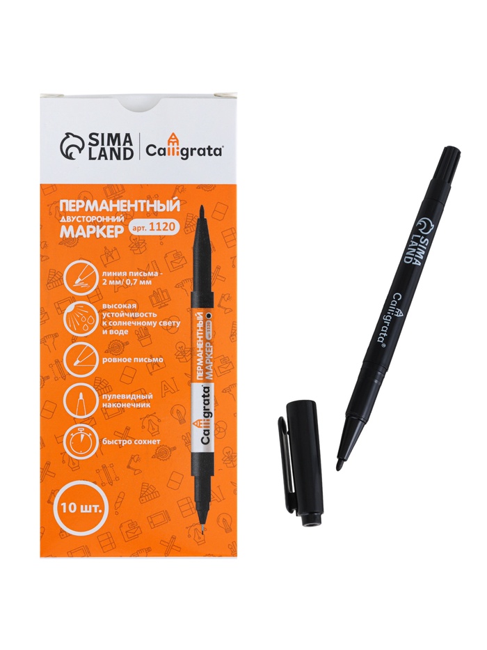 Набор 10 штук маркеров перманентных двухсторонних 0.7 мм/2.0 мм черных CALLIGRATA