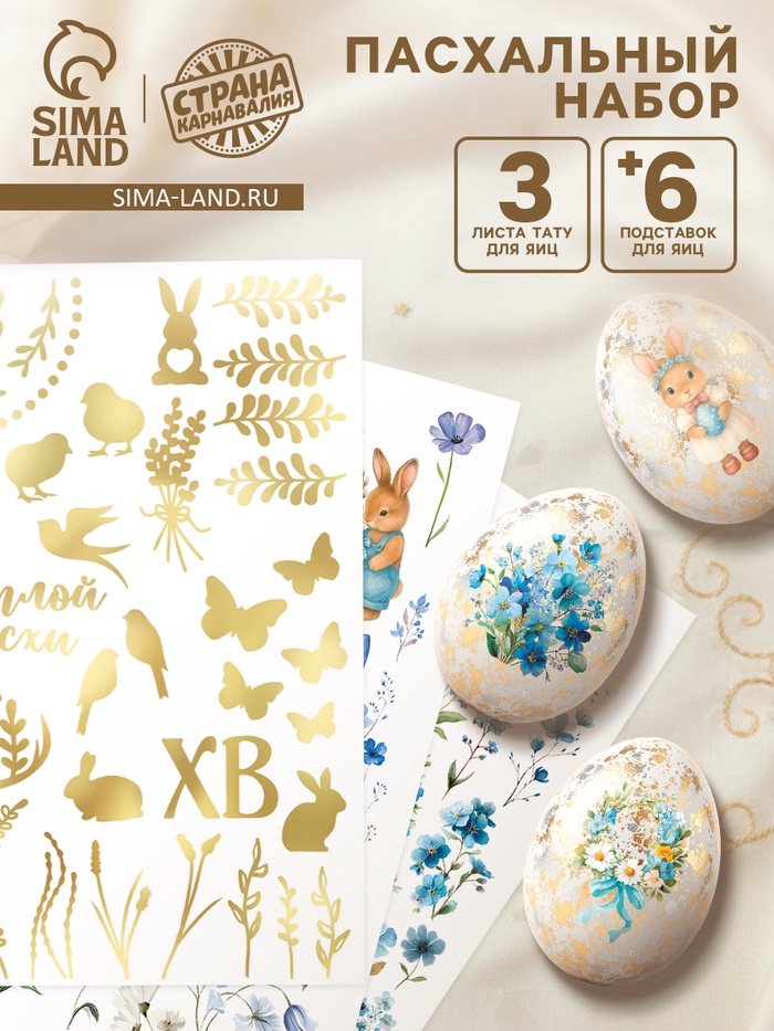 Пасхальный набор для украшения яиц «Весенний»: тату, подставки