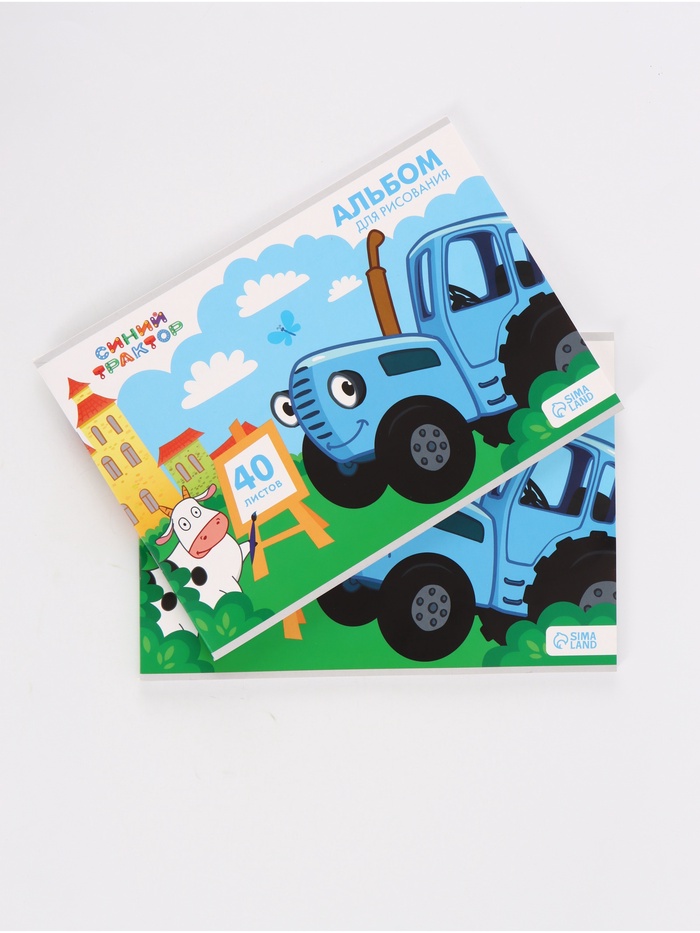 Альбом для рисования на скрепке, А4, 40 листов, 2 штуки, «Синий трактор»